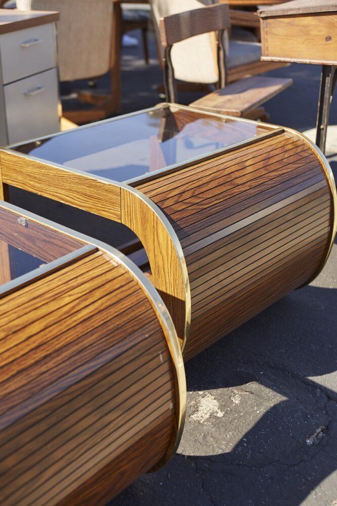 1970年代ごろのアイテムだと思われるサイドテーブルはアメリカらしい巨大なサイズ。ペアで350ドル。