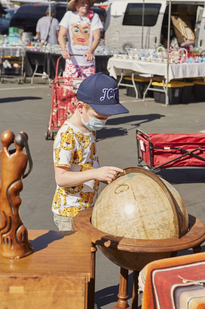 好奇心旺盛。アンティークの地球儀なので、今とは国の数などは違うんだろうけど、勉強熱心なのはすばらしい。フリーマーケットは青空教室にもなる場所であることを知る。お父さんにねだってみたら?