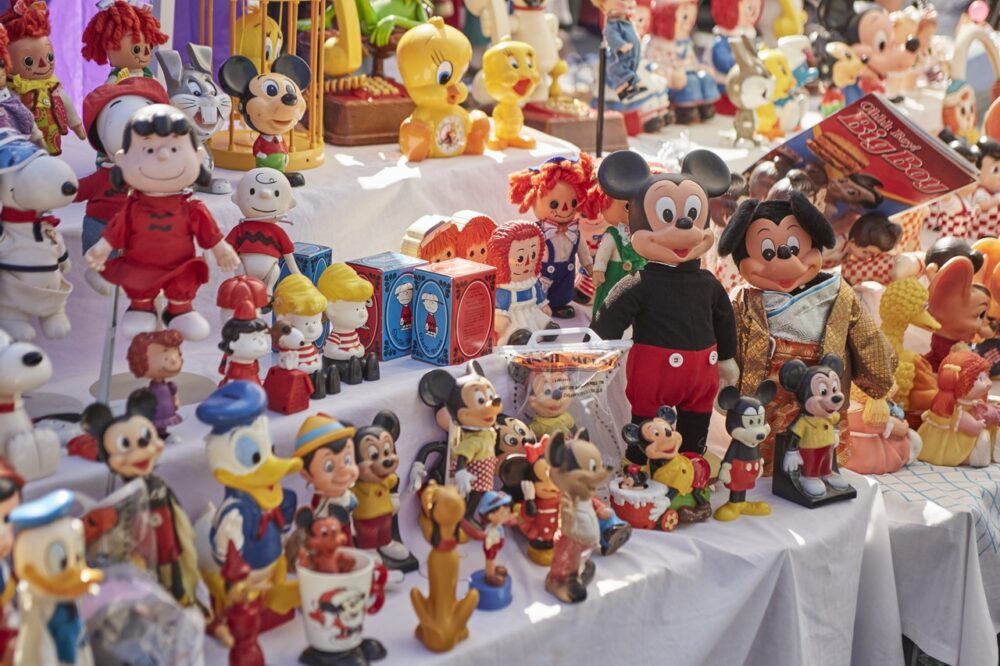 スヌーピーやミッキーマウスなど、年代も大きさも様々。アメリカンキャラクターって見ているだけでも元気になる。コンディションはいろいろだけど、何体か自宅に招き入れたくなる人も多いのでは?
