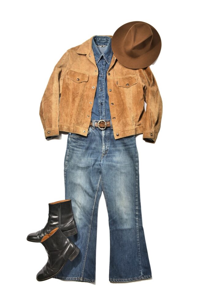 ロン毛にタイトなトップス、それに裾の広がったパンツというのが、ヒッピームーブメントを皮切りに定着した1970年代を代表するスタイル。その後、2000年代初頭にロックTシャツを筆頭に’70年代のプロダクツがアメリカで再注目され、その影響で日本でも一気に’70sブームに突入した。ヴィンテージリーバイスも501ではなく、517や646、684がもてはやされた。当時はヘアスタイルもロン毛の人気が再燃していて、’70年代のスタイルがそのまま脚光を浴びたのだ。