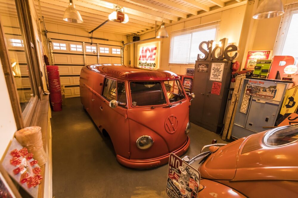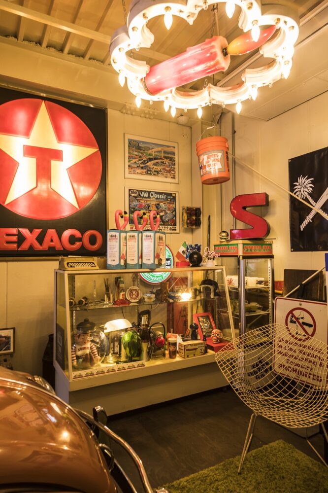ガレージとなったのは、建物奥のスペース。壁で仕切った上で、巨大なガラスを入れ、食事をしながらクルマが見える構造に。つまりはサイド君も仕事の合間に愛車を眺めることができる環境というわけだ。そして店内各部もブラッシュアップ。アメリカのウェイティングバーのようなカウンター席を設置したり、グッズを販売するコーナーを設けたりとアメリカのダイナーに行ったことがある人にとって本当にワクワクする空間となっているのだ。