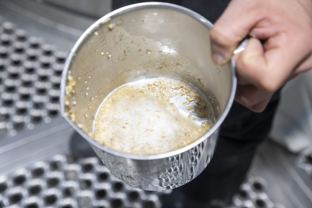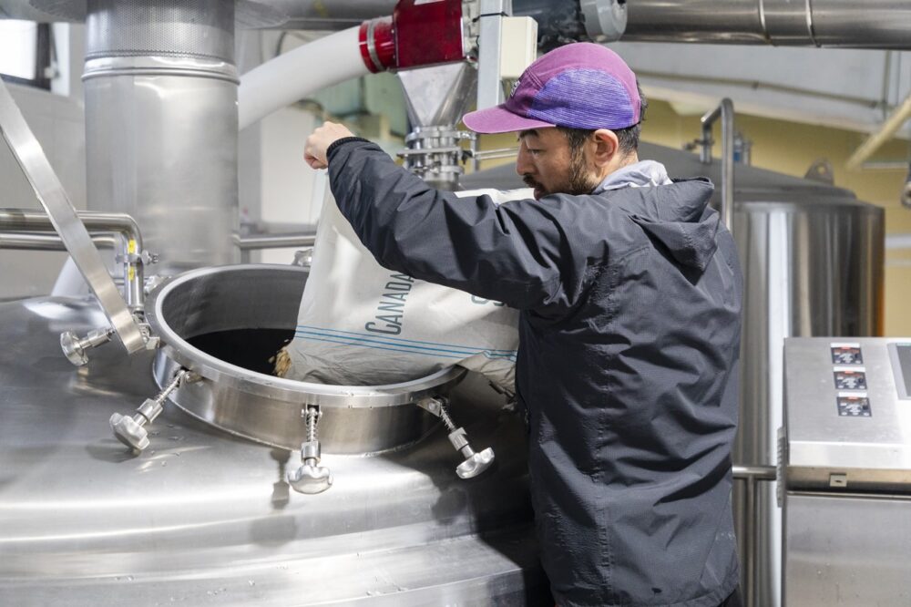 次にオーツ麦を投入する。ブリュワリー内には麦のいい香りが充満。ビールの香りにはまだならないが、違った美味しい気分を味わえる。