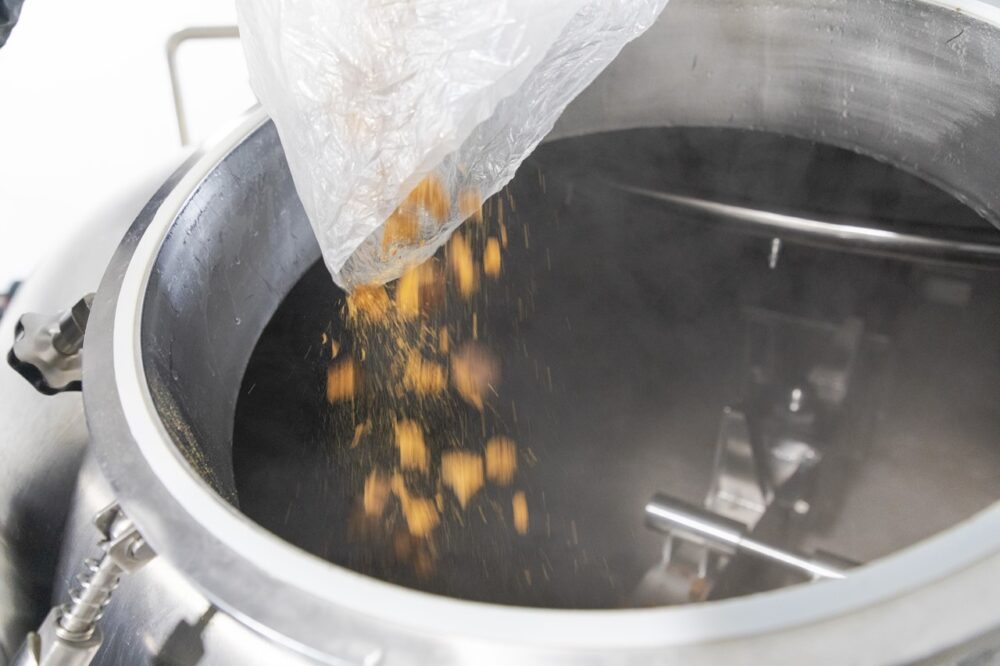 そこから試行錯誤が始まった。最初冷凍したパンが届けられたのだが、配送の途中で溶けてベチャッとしてしまったこともあった。パンを入れるタイミング、そしてパンを感じられる量……。幾度となく試作を繰り返しレシピを改良した。パンは生ではなくローストしてクルトン状にすることでパンの風味を閉じ込め香ばしさも残る。何よりも常温で保管することができるのは製造においてのメリットだった。たくさん入れればパンを感じられるというものでもなかった。こうしてようやく最高のレシピにたどり着いたのだ。