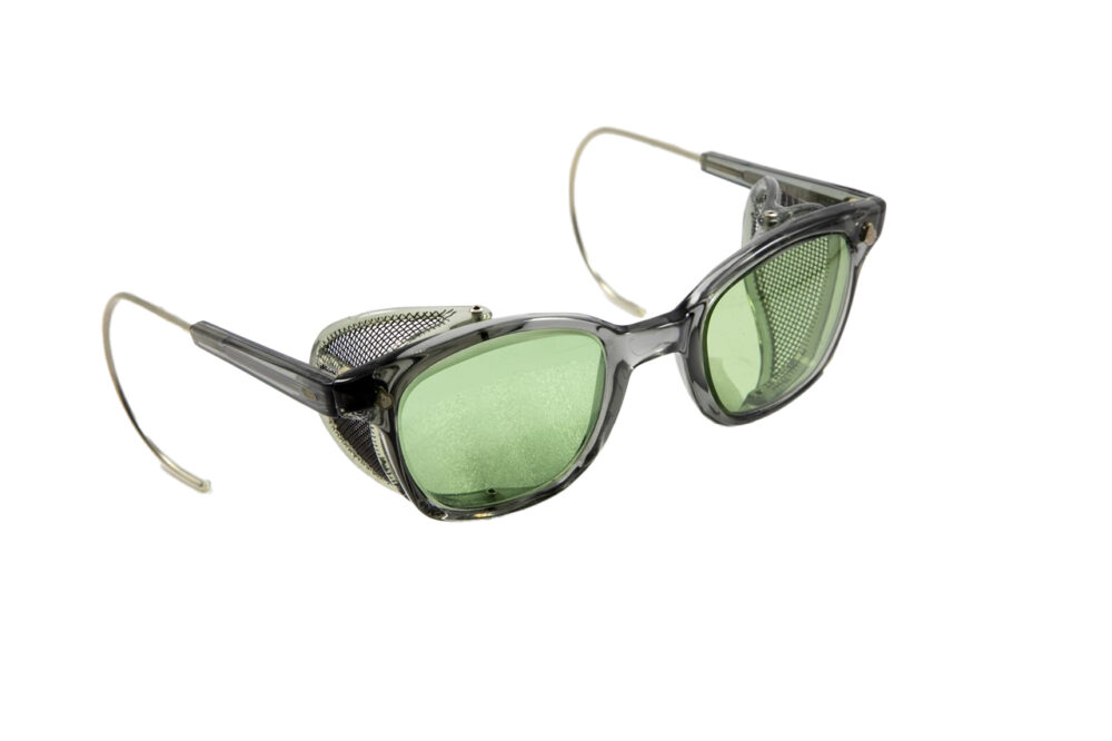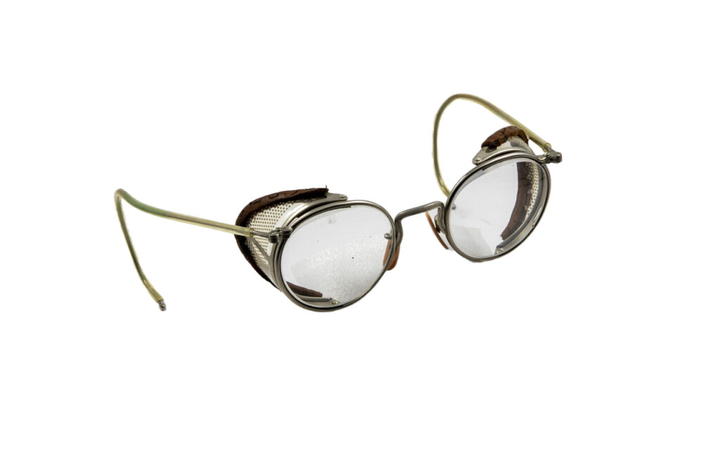 主に工場で作業するワーカーたちが身につけた目を保護するためのアイウエアで、フレームのサイドに目を保護するためのガードが設けられているタイプ。作業用として、バイク用のゴーグルとして使うのもオシャレ。