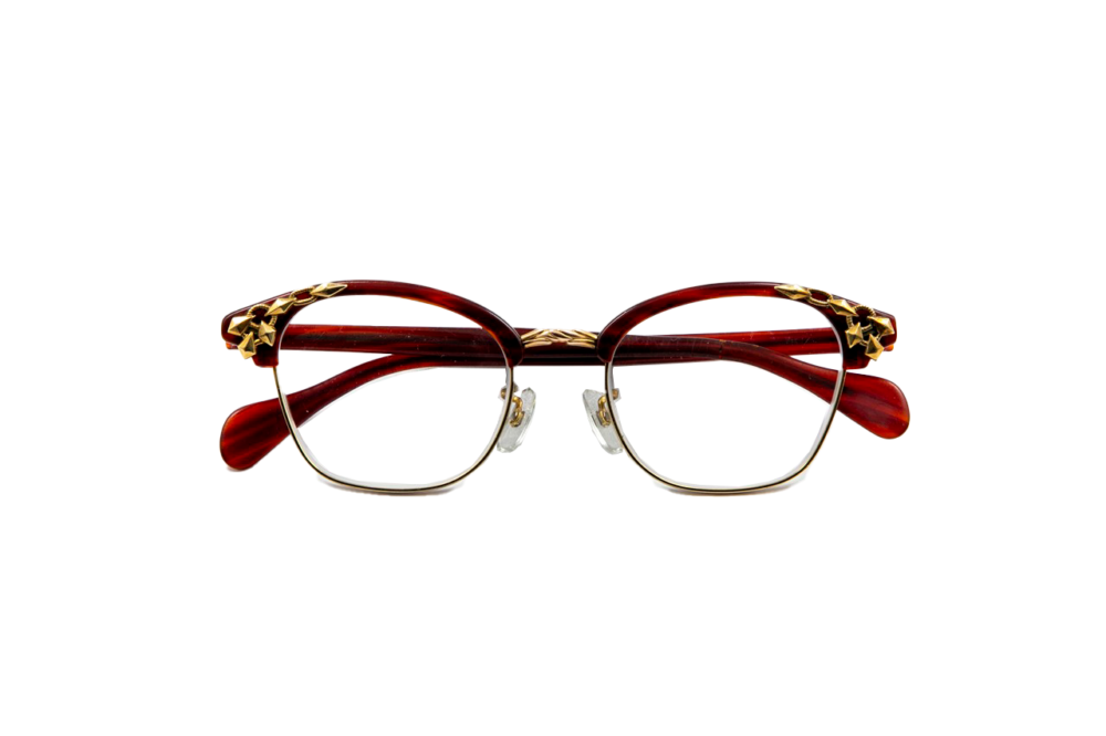 メガネのリム上部の眉(ブロウ)部分に金属や樹脂を使用して、眉毛のように強調されているフレームで、知的でオシャレな印象に変わるとビジネスシーンでも人気のタイプ。ブロウの角度や太さ、装飾などで個性も様々。