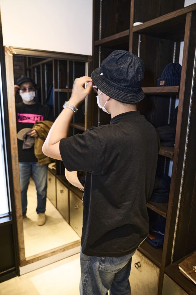 インディゴデニムのバケットハット、7016-1。このカタチは三浦の好きなやつ。9900円