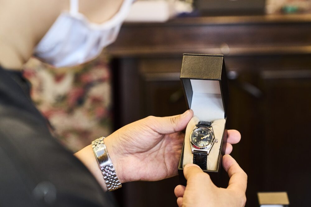 バブルバックモデルを忠実に再現したBILTBUCKの545というモデル。こちらは最高級クロコダイルのベルトを装備。6万500円
