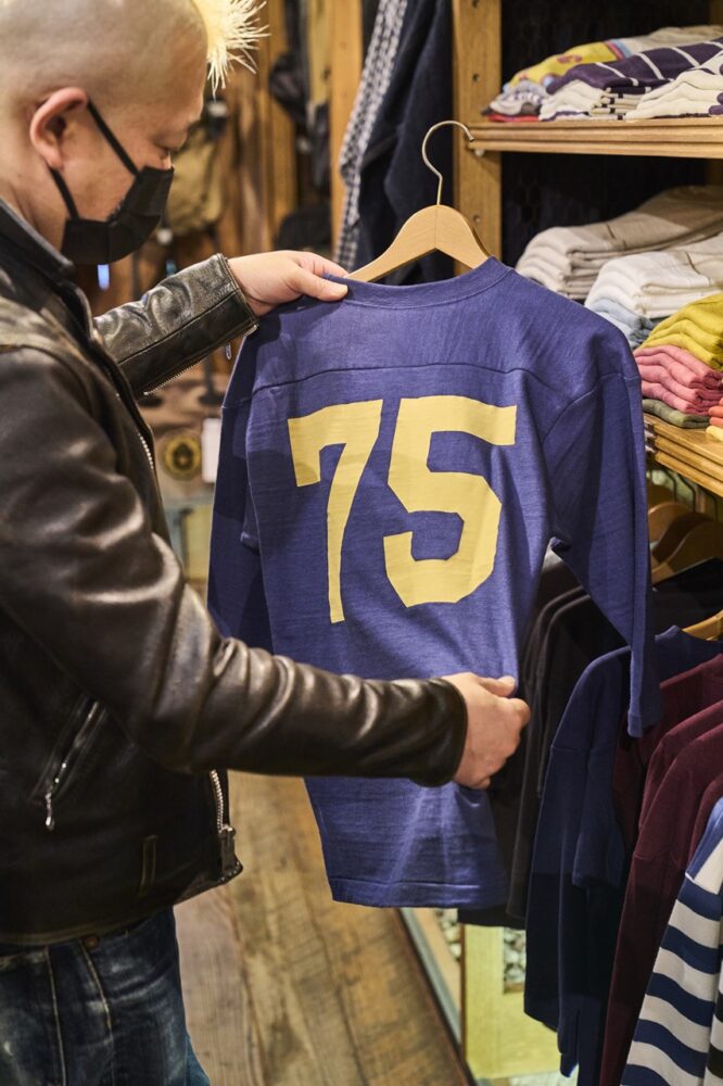 小川が気になっているナンバリングTeeは、ウエアハウスの定番フットボールTシャツ、Lot.4063。前面はフットボール柄。8800円
