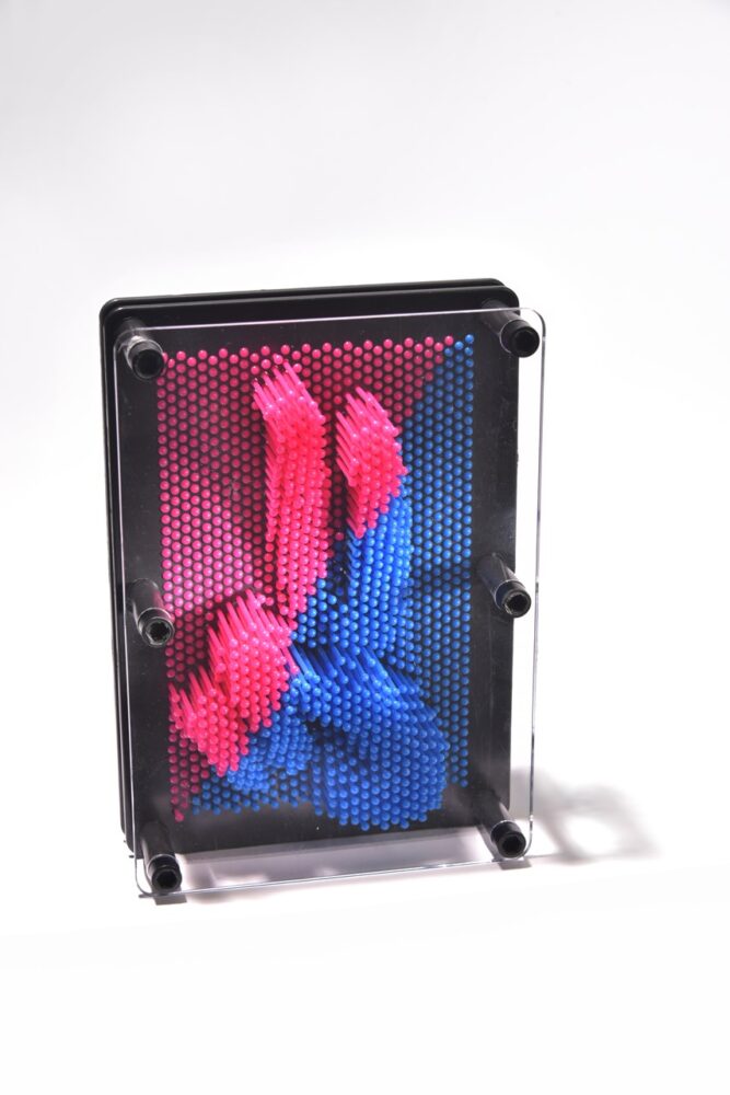 グリッド状に配置されたピンを押し出せば、自分だけのアートの出来上がり! 従来型は金属製のピンだったが、令和版で安心な樹脂製に改良された。2200円
