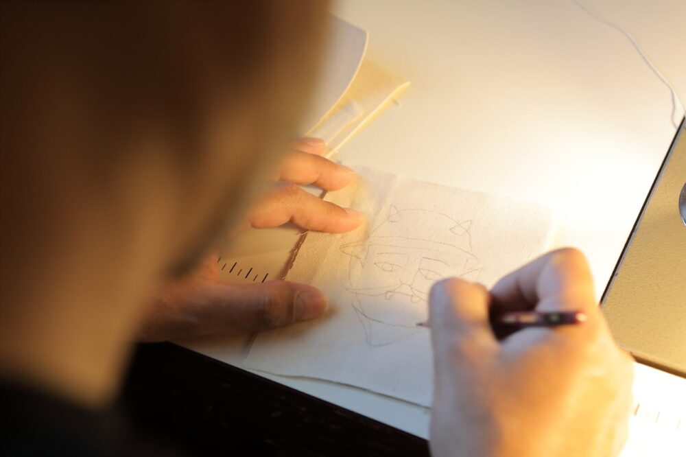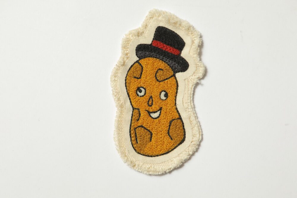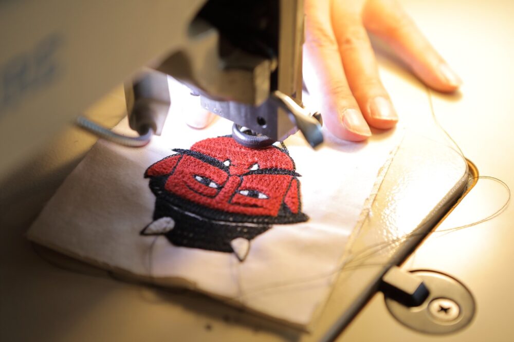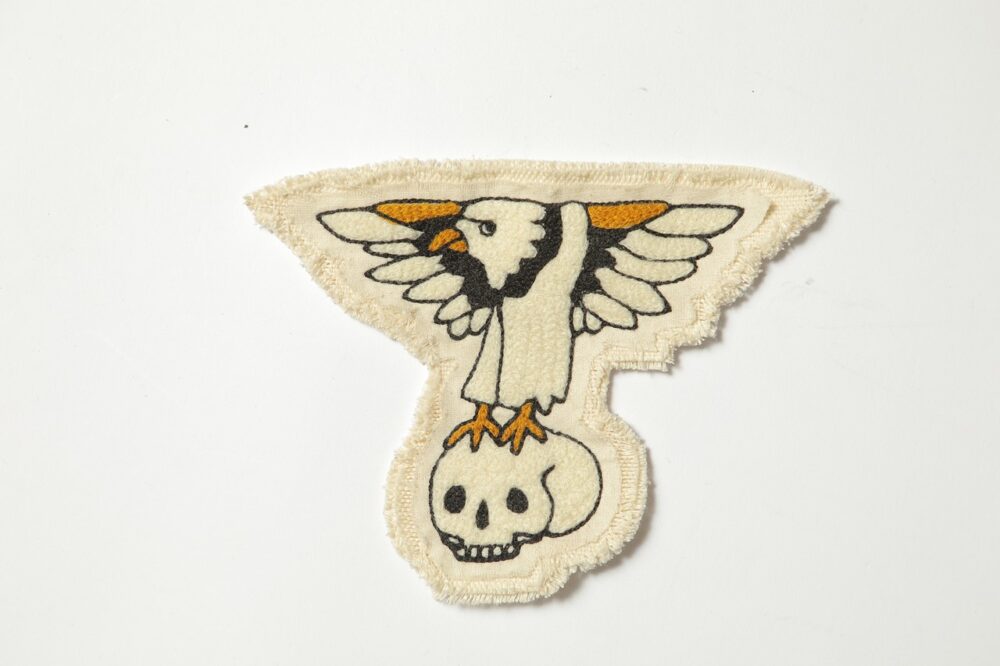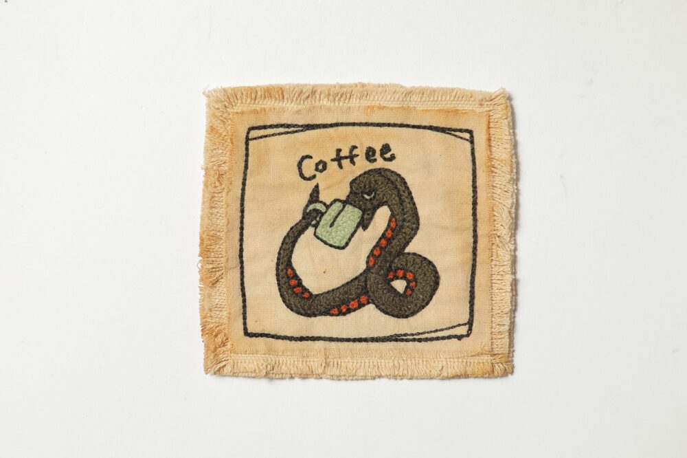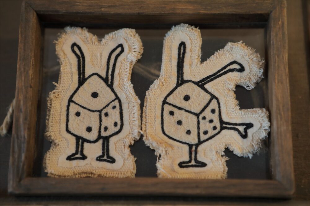 「doodle」とは落書きという意味。早川さんがハンドルミシンを使って作るチェーン刺繍のワッペン。モチーフとなるのは自分の落書きだ。