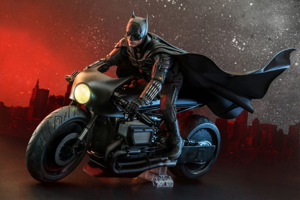 バットサイクルを1/6スケールで立体化。アクセサリーとしてディスプレイ用の台座が付属する。また別売りの「ムービー・マスターピース」バットマンを搭乗させることで映画のシーンも再現できる。