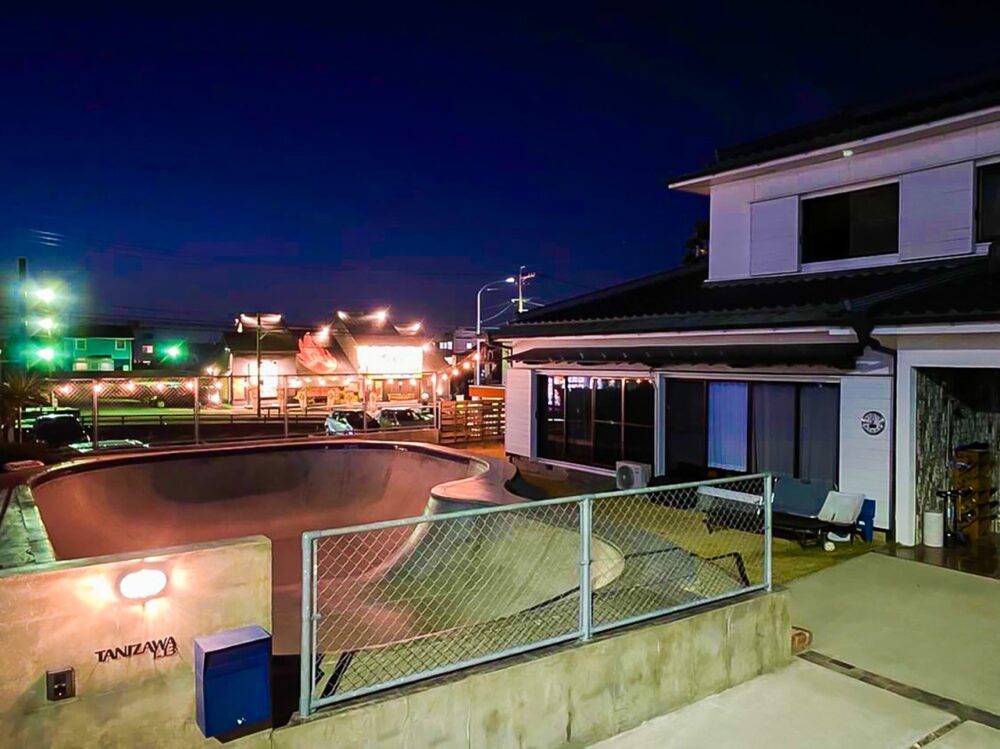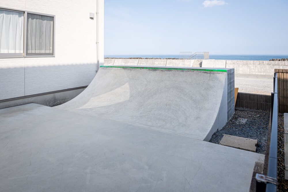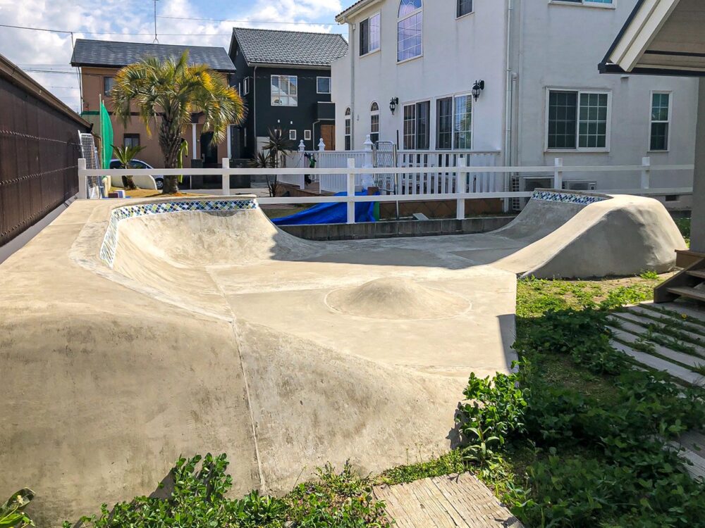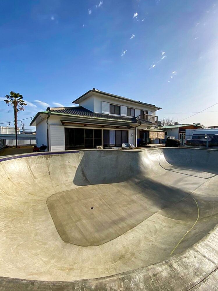 海好きが高じて千葉の外房に移住したサーファーの方が所有するパーク。プールコーピングの下に張られたタイルは自宅キッチンと同じ柄になっており、観て楽しんで、滑って楽しめる家に仕上がっている。
