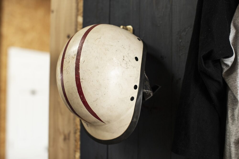 愛用するヘルメットは、H-D純正のMcHAL社製クラブスター。1950年代から’60年代に生産された希少なモデルで、当時のペイントが綺麗に残っている。