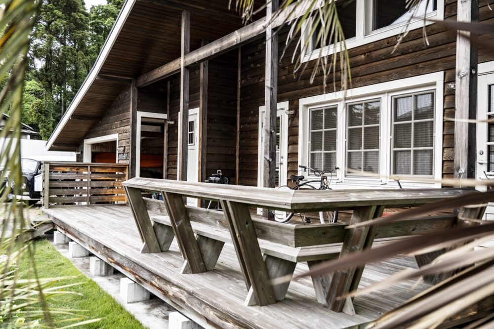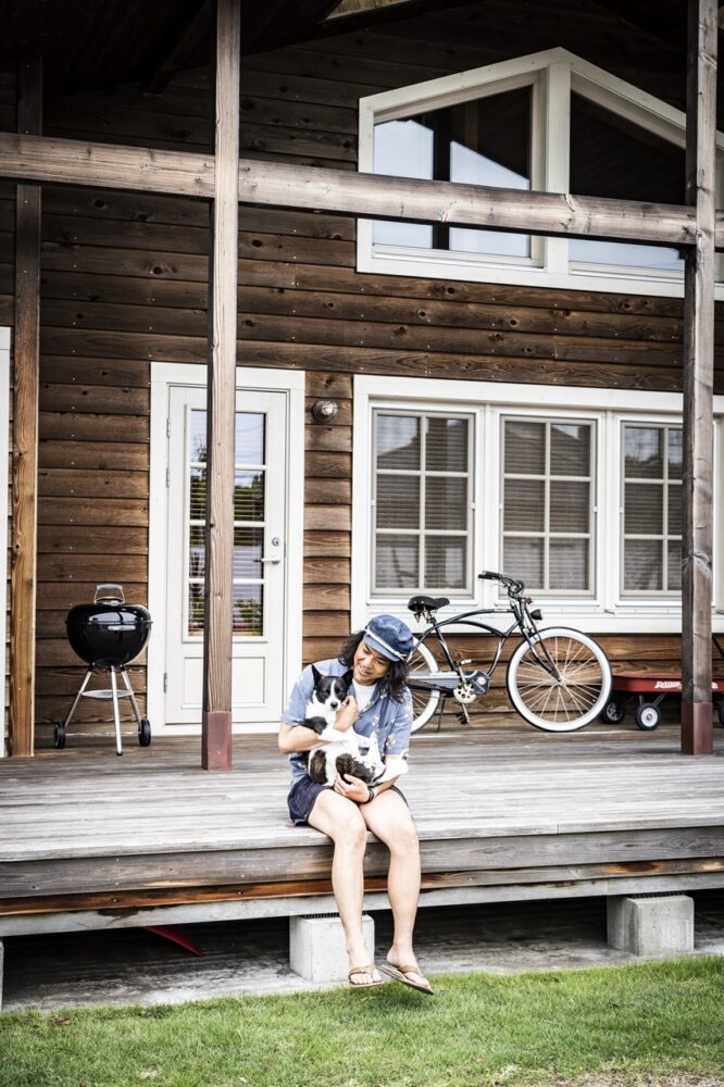 家作りのコンセプトは、カーポートガレージ付きの平屋であることと、長く住みながら風合いを増していく家であるということ。家の外壁やデッキの木材は色味の変化が顕著なレッドシダーを採用。築6年目ですでに深い色味となった味わい深い雰囲気だが、この家に住みながら家のメンテも楽しんでいきたいのだと言う。