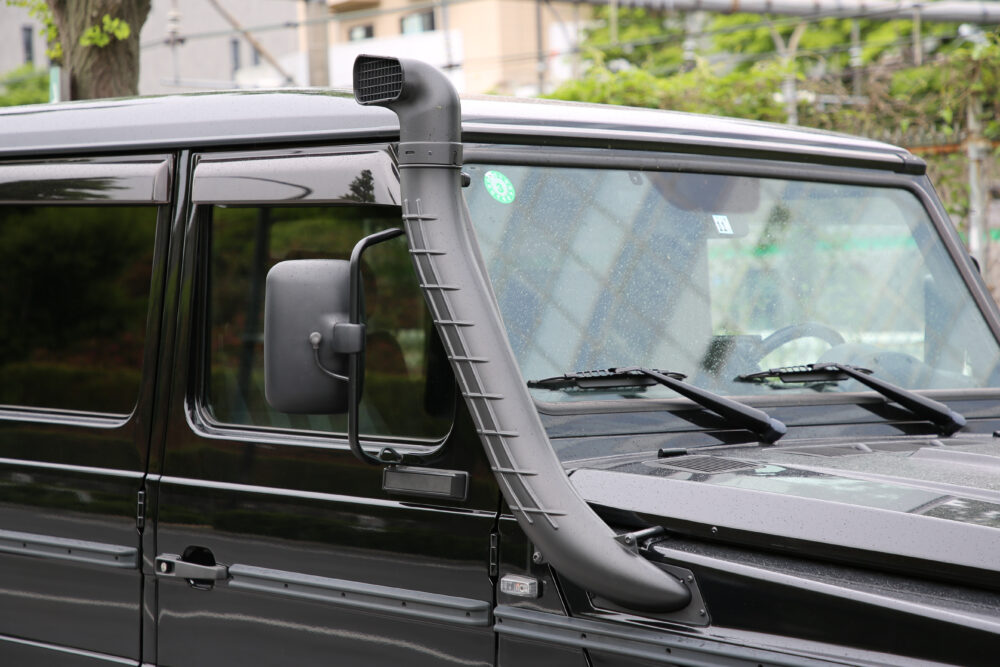 このプロフェッショナル仕様の大きな特徴が、軍用スペックのシュノーケルとヘビーデューティなサイドミラー。男心をくすぐる意匠だ。