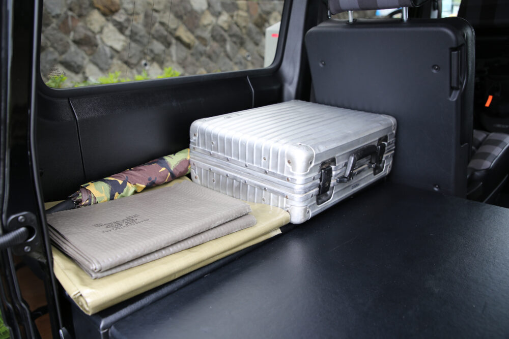 ヴィンテージのリモアのスーツケースなど、軍用車のテイストに合わせた小物もセンス抜群。