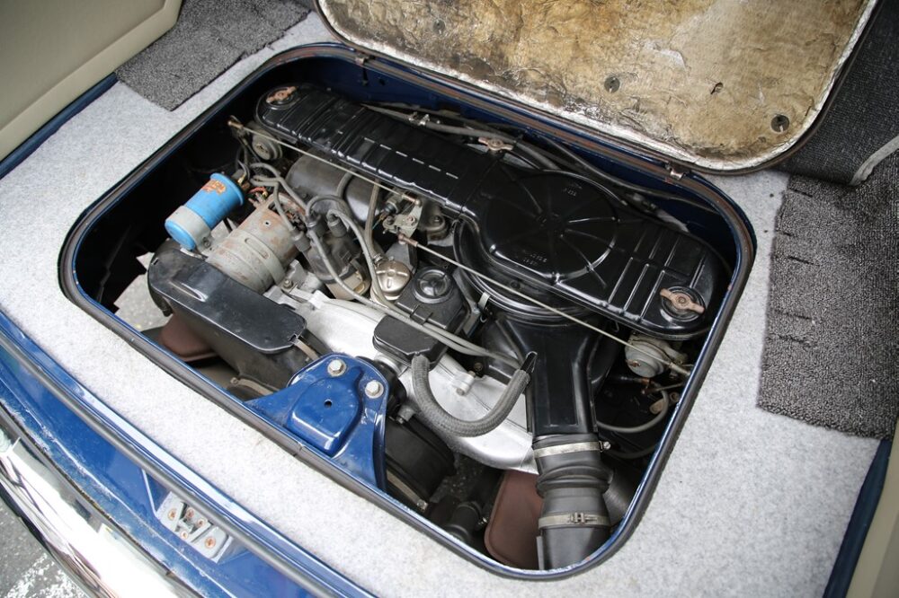 純正色でのニューペイントに加えて、バンパーもリクローム。約60年前のクルマとは思えない美しさだ。伝統のリアエンジンでアメリカ車とはひと味違う乗り心地を楽しんでいる。