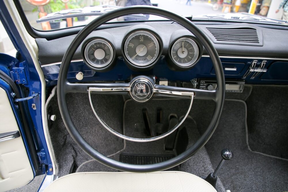 クラシックなインパネはタコメーターでなく、純正で時計になっているのがおもしろい。