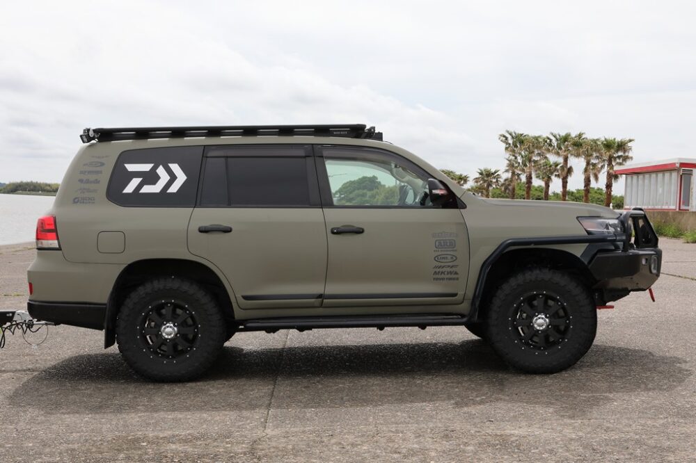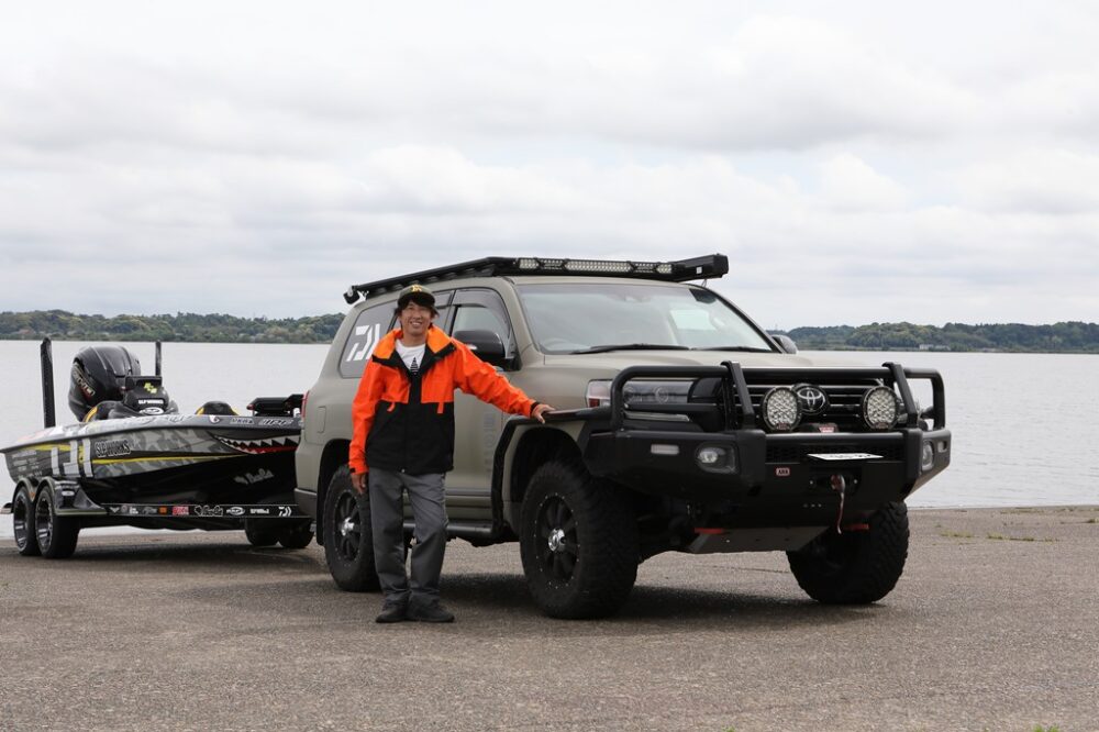 「普段から東京とホームの霞ヶ浦を往復することに加えて、大会やイベントではバスボートを引っ張って参加するので、長距離を移動する際の快適性と牽引するためのパワーは必要不可欠。そうなると排気量があって、機械としても信頼できるランドクルーザーに行き着きました。このカスタムはすべてフレックス・ドリームにお願いしていて、見た目だけでなく、バスプロとして活動するための機能もしっかりと落とし込んでもらっています」