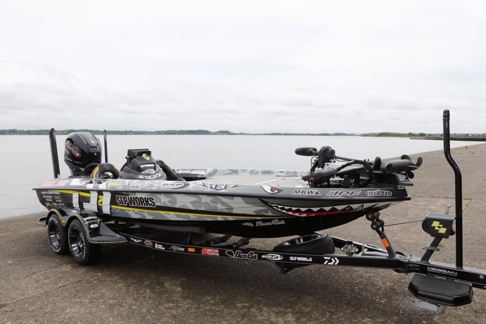 橋本さんが乗るバスボートは、アメリカを代表するメーカーであるバスキャットのクーガーFTD。20フィートでエンジンは275馬力のヤマハ製。本人曰く、「日本で一番派手なラッピングと言われます(笑)」