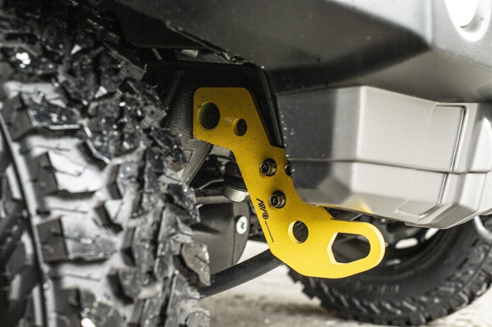 タクティカルバンパーとセットで使える牽引用フックを前後に装備。万が一の際の実用性だけでなく、外観上のワイルドな印象を強調している。