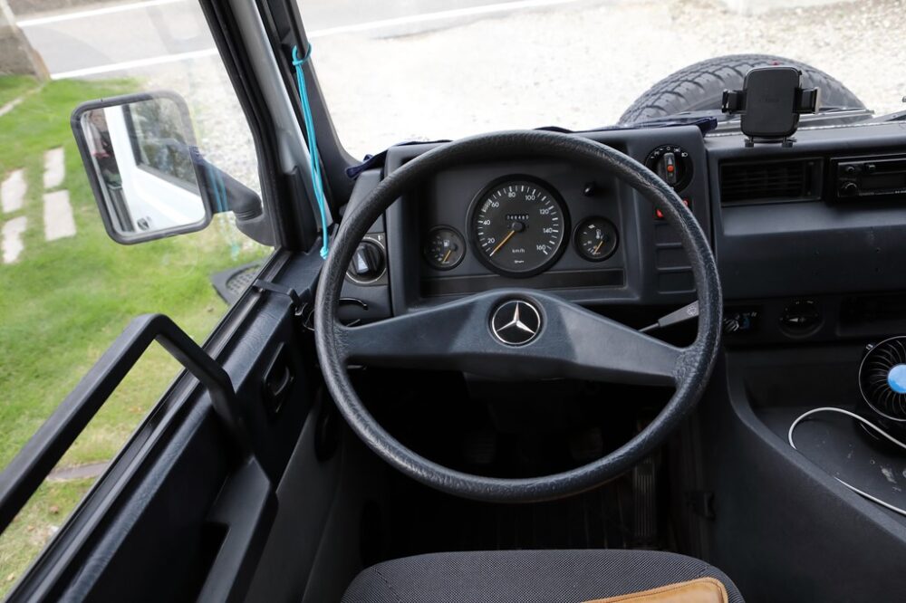 メルセデス・ベンツと言えば高級車の代名詞であるが、この車両はトランスポーターがベースのため質実剛健な印象のコクピット。