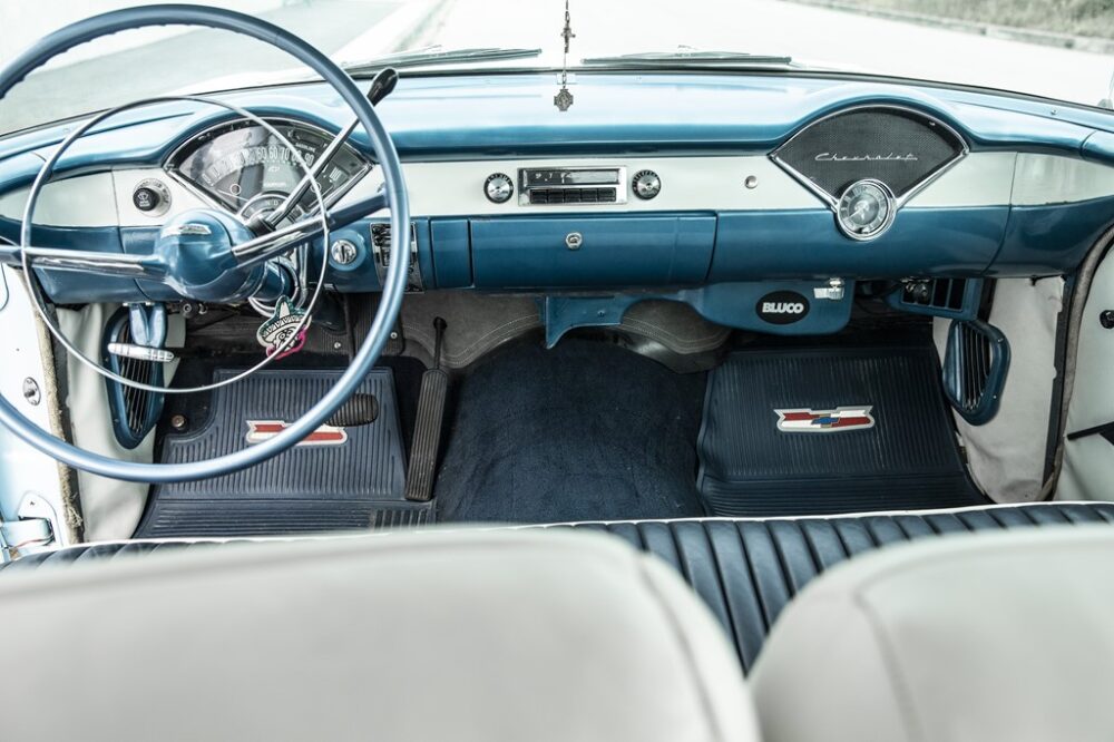 “トライシェビー”と呼ばれる’55/’56 /’57年のモデルの中でも最もシンプルなデザインの’55年式は、『アメリカングラフィティ』や『トゥーレーンブラックトップ』など、クルマ好きに語り継がれる映画に登場する名車のひとつである。