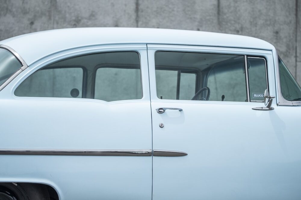 「コンパクトなアメリカのスポーツカーに乗りたいなと思ってトライシェビーを探しました。’55年から’57年は毎年デザインが変わりますが、ゴージャス過ぎず気軽に乗れる’55年の直6が良いなと。豪華絢爛な’50sを好む人からしたら邪道かもしれませんが、モール類の飾りをできるだけ簡素にしたスタイルを意識しました」