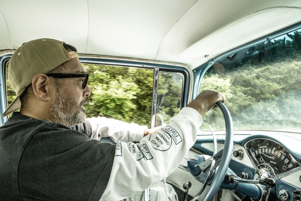 バイク乗りやカーガイに支持されるワークウエアブランド、ブルコを展開する青木さんは、自身が二輪四輪共に愛するモーターヘッズ。これまでのクルマ歴はアメリカ車のピックアップや欧州車のスポーツカー、国産旧車など幅広い。そして、昨年完成した愛車がシボレー・210である。