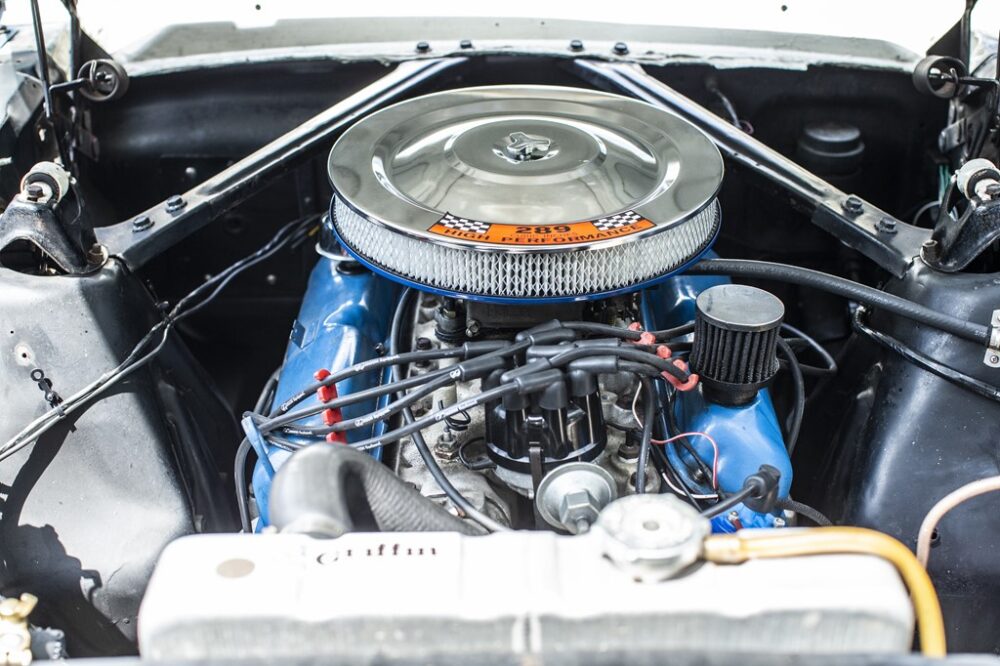 エンジンは’67年の289 V8エンジンをベースに、ハイリフトカム、オーバーサイズピストンをインストール。エキマニは純正オプションであるHIPO、キャブレターは4バレルのHOLY 650 CFMを採用。