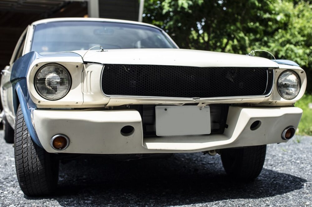 グリルのセンターバーやオーナメントを取り外し、シェルビーのバンパーを移植したフロントマスクがレーシーな雰囲気を演出。