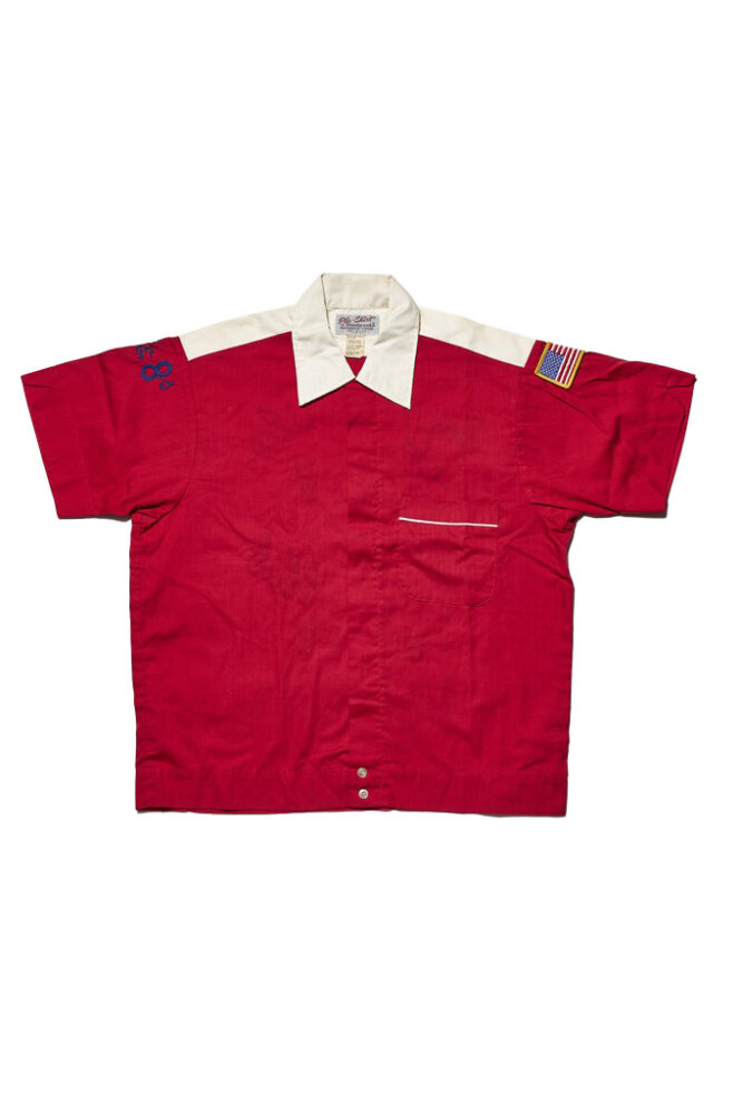ロサンジェルスのBel-Mar Sportswearが手がけたレーヨン製。フロントは両胸にポケットでクルミボタンを備える。背中は詳細不明だが「76」の刺繍からオイルブランドのフィリップス関連のモノか? 5万4780円