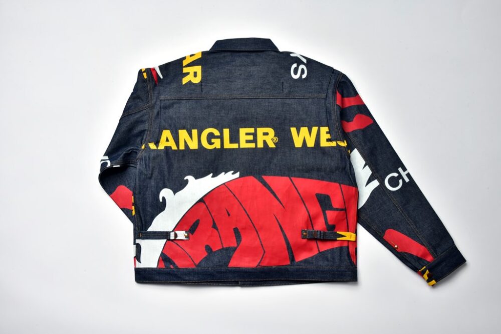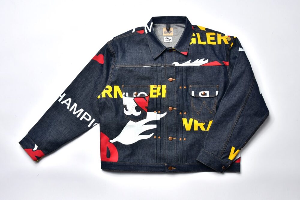 ラングラーの銘品「111MJ」デニムジャケット。これを今回限定復刻されるデニムバナーの生地でリメイクしたのがコチラ。ひとつとして同じパターンが存在しない、いわば1点モノのジャケットだ。シルエットはルーズフィットを採用する。