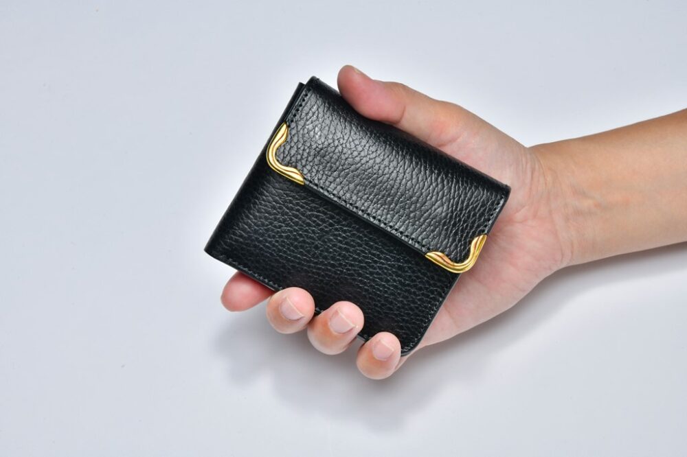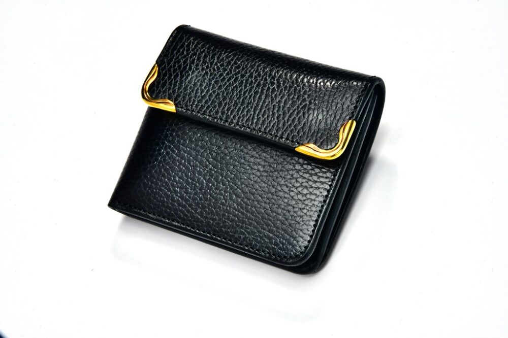 最高級レザーのブッテーロに高級感のある型押しを施した、モリーヴヘヴィーオンスとクランプのコラボレーションで生まれた財布。使い込んでいくと黒革特有のテリが出て、経年変化も楽しめる。軽装な夏にこそ使いたい、コンパクトで使い勝手のいい財布だ。