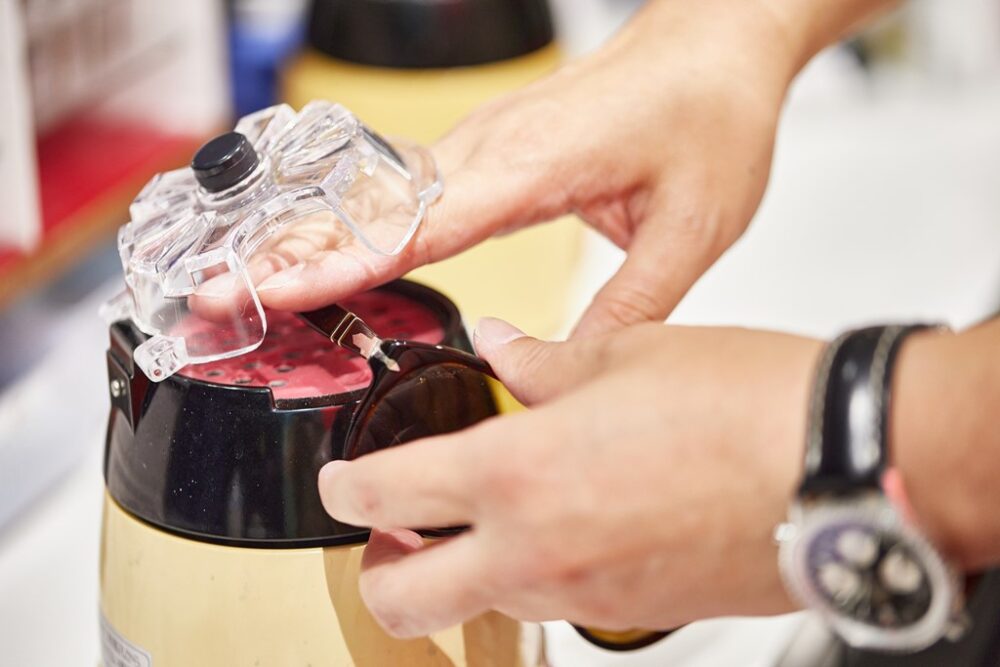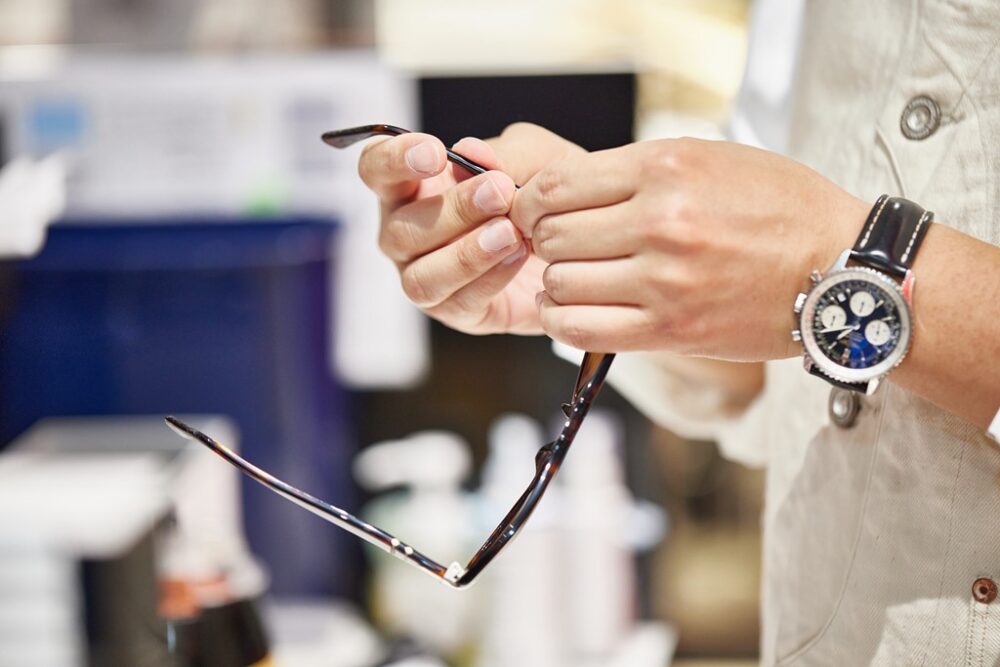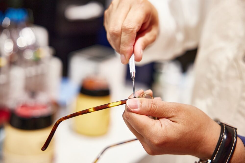 眼鏡って日常的に掛けていると、どうしても歪んだりズレたりして、顔へのフィッティングが悪くなってくる。視力矯正している場合、目とレンズの距離を計算して矯正しているため、その距離にズレが発生すると本来の矯正視力にならず、眼鏡をかけている本人にとってすごくストレスになってしまう。特に暑くなると、汗で滑ってズレやすくなるので、メインテナンスがとても重要になってくるものだ。