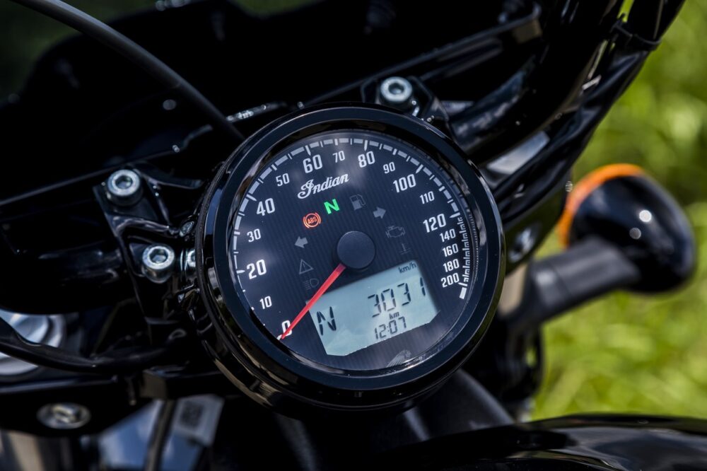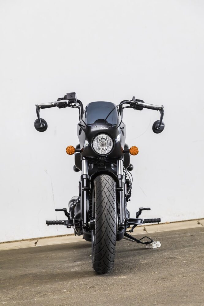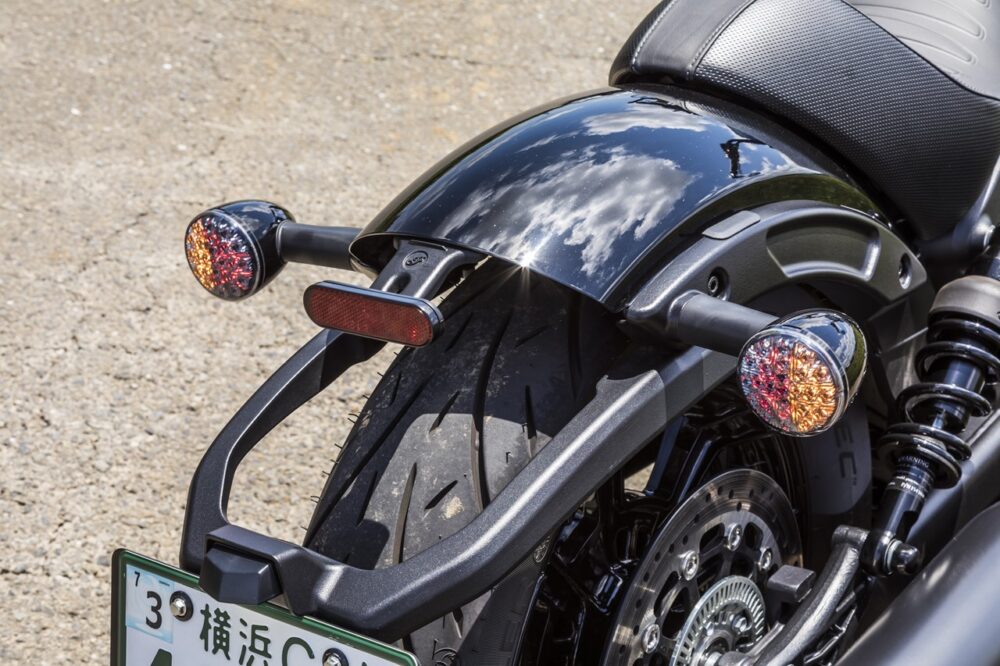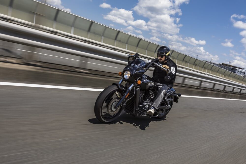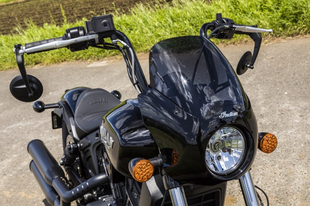 エンジンの出力は非常にアグレッシブ。低速域だと落ち着いた乗り味だが、アクセルを回すと一気に吹けあがる特性は、まるでVツインスポーツの雰囲気。クルーザーの常識を覆す味付けはさすがインディアンモーターサイクルといったところだ。