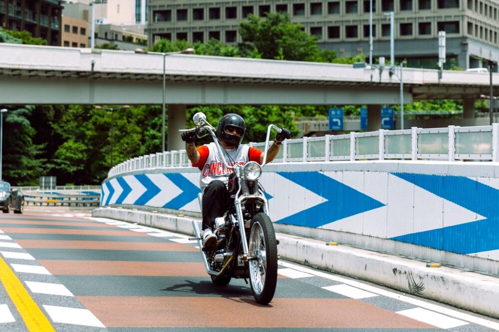 「乗り物全般好きですが、特にハーレーは原宿の先輩たちの影響もあって絶対チョッパーに乗りたいと思っていました。自分にとってのバイクはただの移動ツールではなく、友達と遊ぶ道具っていう感覚です。バイクが好きなのかバイクに乗る奴らが好きなのかどっちなんだろう(笑)」