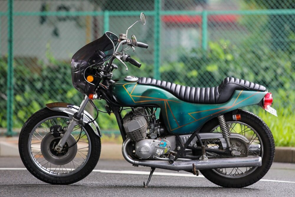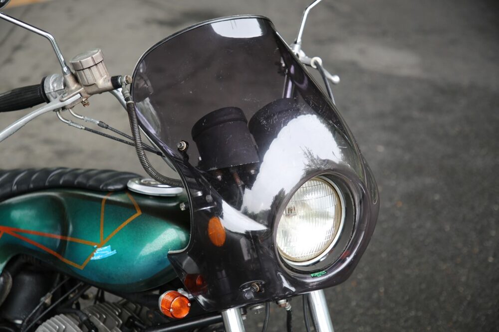 「このバイクは、アリゾナで見つかったワンオーナー車なんです。だから日本に着いた時に掃除をしたら、中からたくさんのサソリの抜け殻が出てきて焦りましたね。前オーナーが新車で購入して、その当時に人気を集めていたトレーシーボディでカスタマイズされていました。このトレーシーボディというのは、もともとサーフボードを手掛けたサンタクルーズのファイバーグラスワークスという会社のカスタムキット。サーフボードで培った技術を使ったFRP製のボディキットで、ガスタンク、サイドカバー、キットカウルをボルトオンのみでカスタマイズできたんです。ハーレーなどに車種別でキットを販売していて、実はカワサキのマッハ向けのモデルも展開されていたんですよ。僕はもともとアメリカも好きだし、日本の旧車も好きだから、ちょうどいい塩梅だと。ただ日本ではあまり知られてないので、他からはちょっと微妙な反応ですね(笑)」