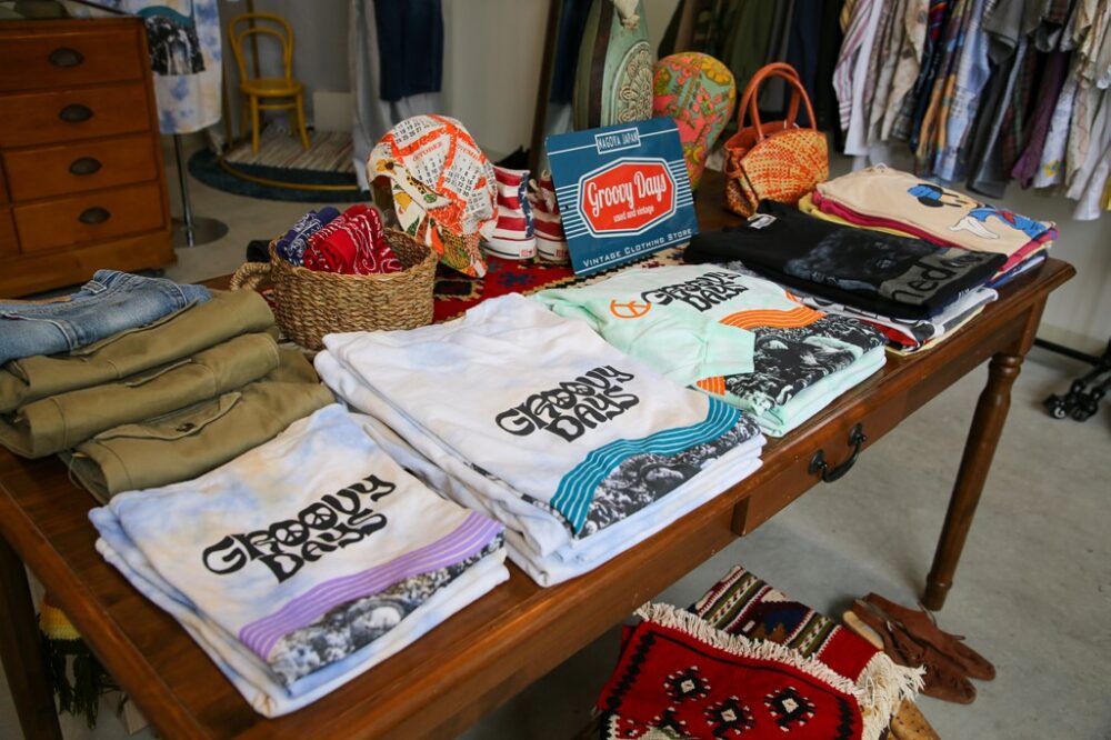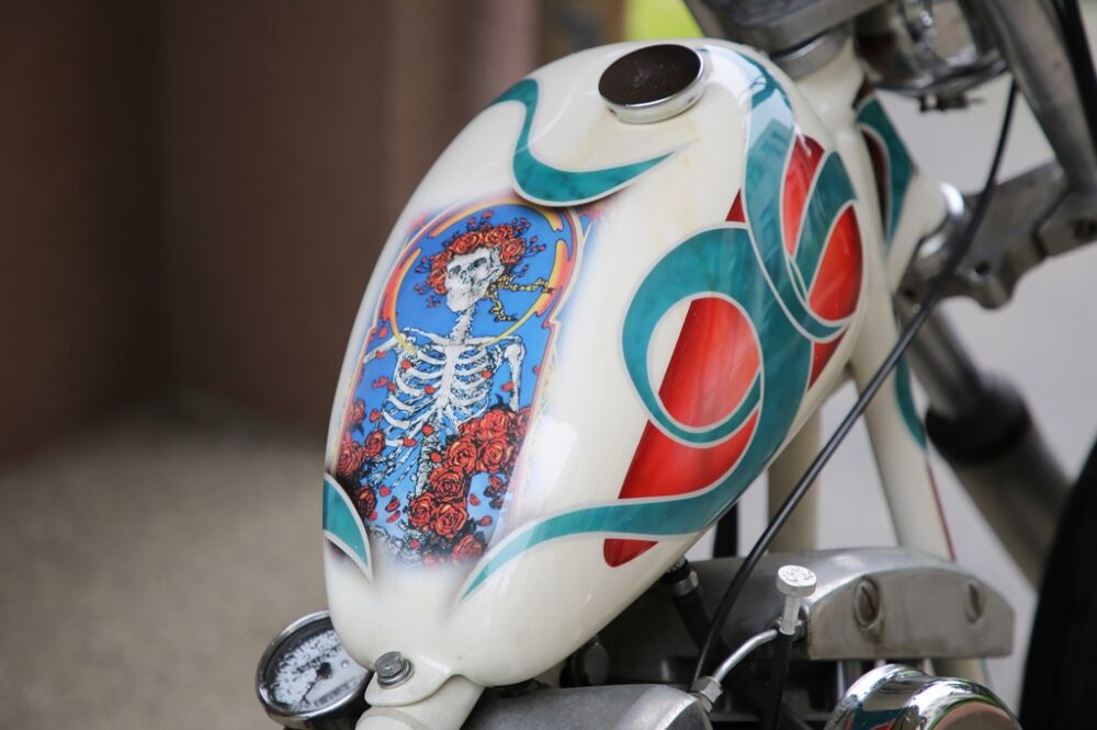 「バイクだけでなくファッションも’70sが好きなんですが、それはデッドヘッズの叔母の影響なんです。それはショップにも反映されていて、そのテイストの古着やオリジナルをファミリーで楽しめるように子供服も充実させています。だから愛車のタンクにはグレイトフル・デッドのペイントを入れています。それが自分のルーツだし、今も大好きな世界観です」