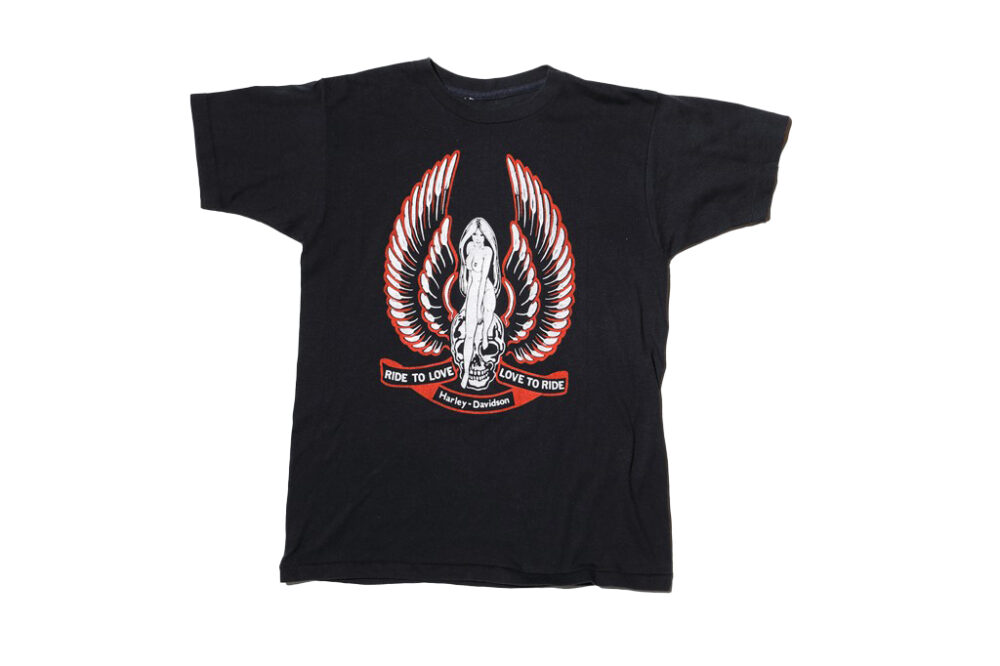 ハーレーのスカルウィングにヌードプリントという組み合わせは、不動の人気を誇る。’80sボディ。6万5780円