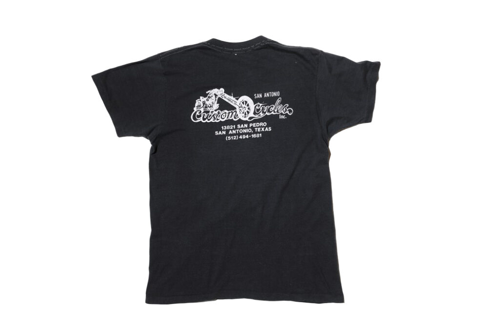 バンドやムービー、そしてアニメなど、ヴィンテージプリントTの高騰が止まらないが、意外とプライスが落ち着いていて、今狙い目となっているのが、モーターサイクル関連のTシャツだ。とはいえカレッジTと並ぶ大定番であり、いつプライスが上がっても不思議ではないジャンルだ。名店フェイクαでその傾向を聞いた。