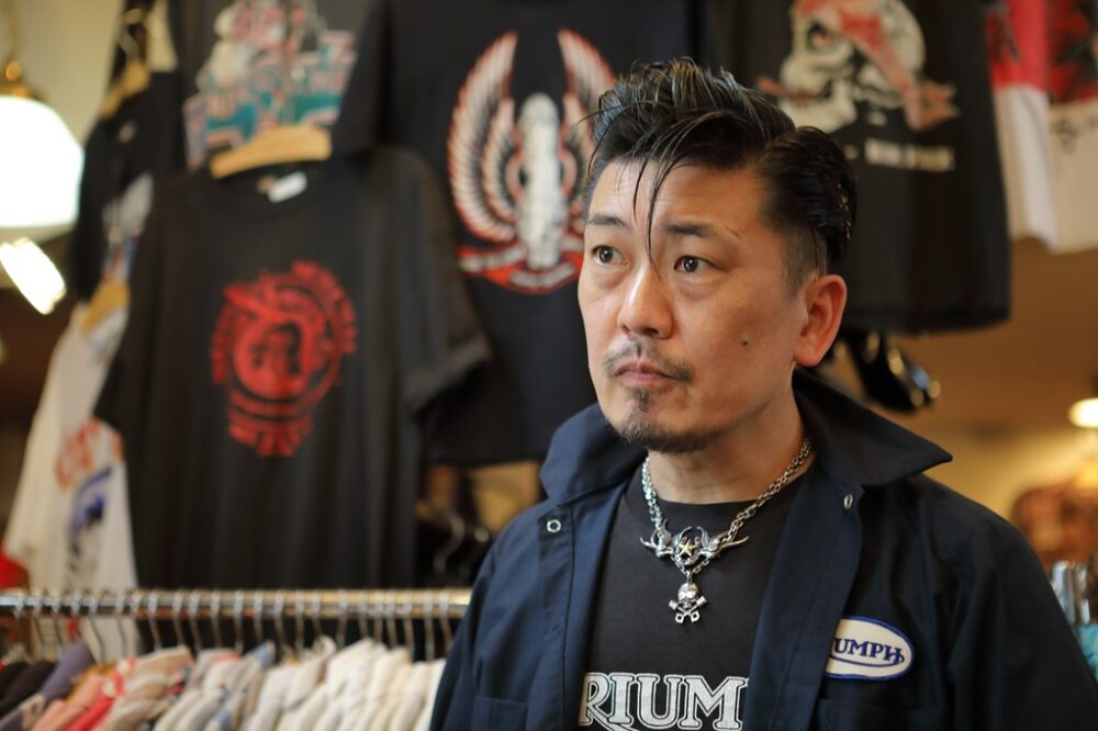 原宿の老舗ヴィンテージショップの名物スタッフ。映画『乱暴者』のマニアとしても有名。トライアンフが愛車。