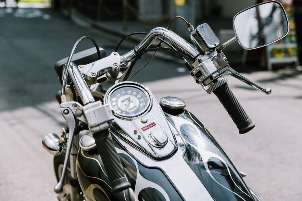 絞り込まれたナローな6ベントバーは、押し引きは大変だが、実はすり抜けしやすい都会的なディテール。外装のブラック&シルバーのペイントはS PAIT WORKSが担当。