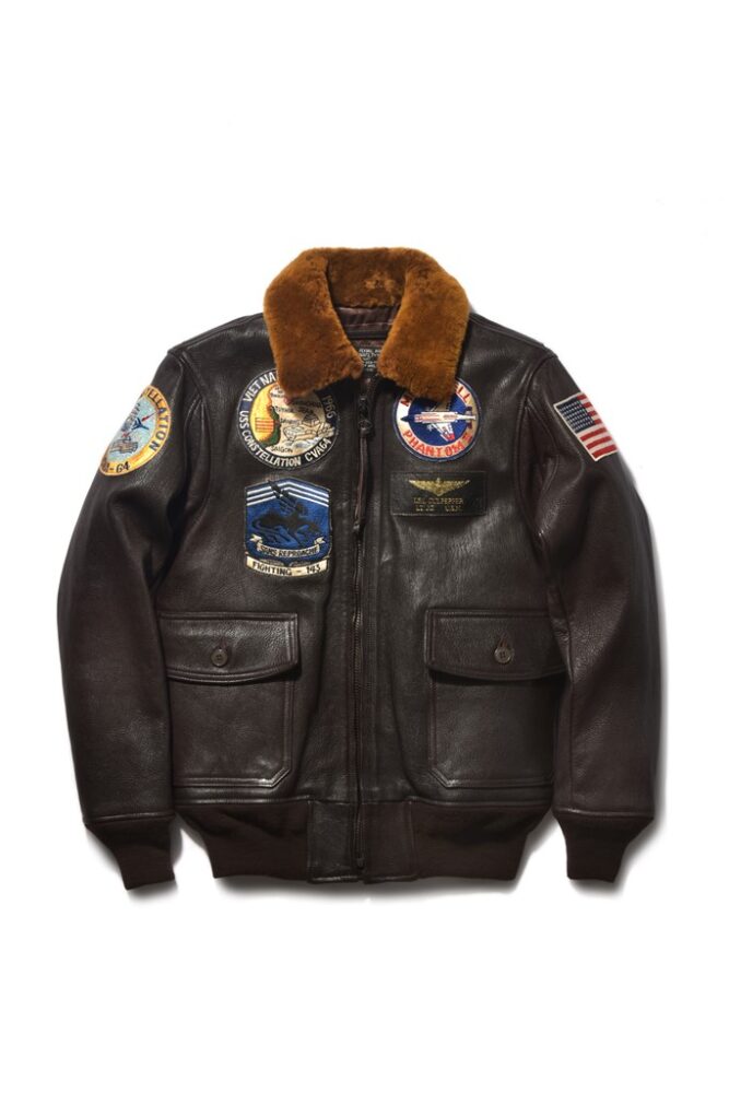 G-1は米海軍で1948年から採用されたフライトジャケット。このモデルのベースになっているJ-7823Dは、1971年に納入されたもの。G-1の変遷の中でも完成度が高いといわれているモデルで、カスタムは空母コンステレーションに配属されやパイロットによってフルデコレーションされたイメージを再現している。当時の兵士は艦上や基地内だけでなく、プライベートでも着用していたほど親しまれてたモデルである。