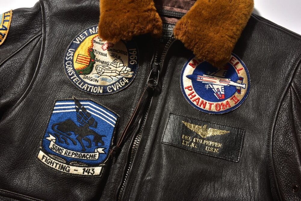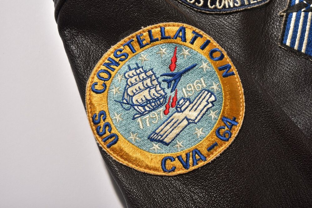 1960年から2003年まで現役の航空母艦だった空母コンステレーションのパイロットがカスタムしたことをイメージしたデコレーション。どれもクラシカルで立体感のある刺しゅうパッチを採用することで、ジャケットの時代感と雰囲気を合わせているのはさすがである。