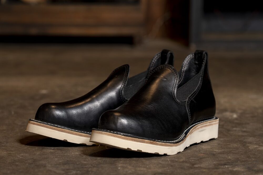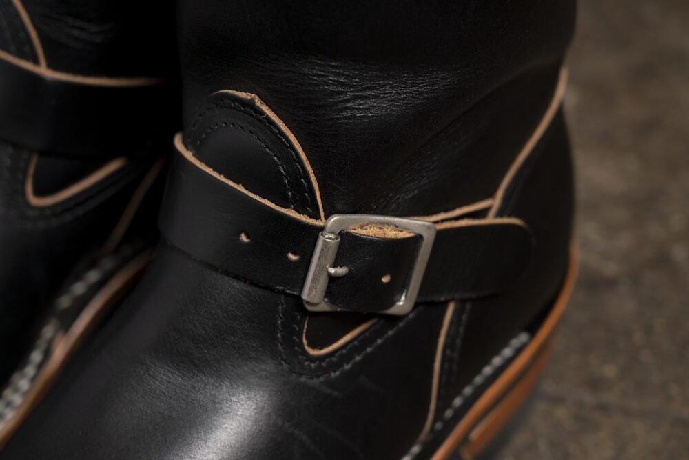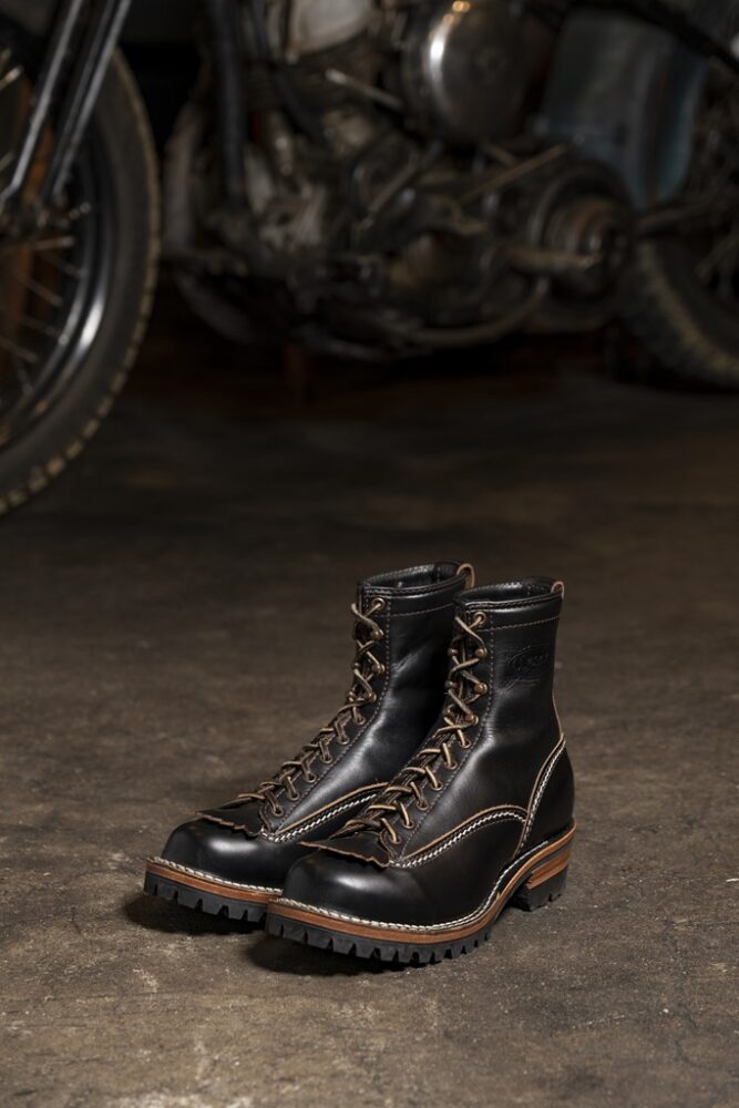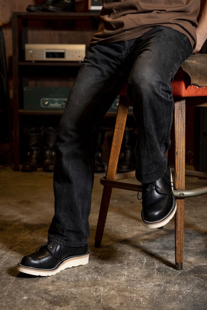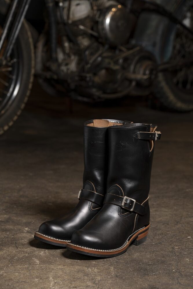 1939年に製造を開始し、その耐久性の高さと履きやすさでワーカーやバイカーに愛されてきた名作・ボスをダブルショットレザーでカスタマイズ。レザー表面のみの染色なのでカットされた断面から茶色のラインが見えるのがアクセントになっている。13万2330円