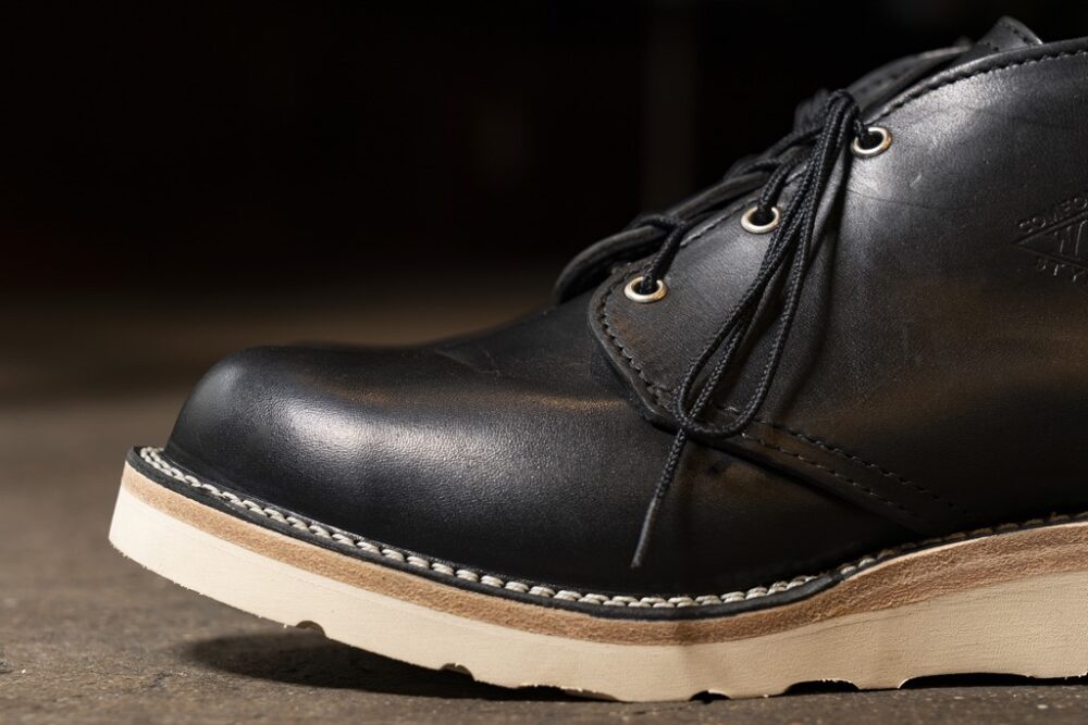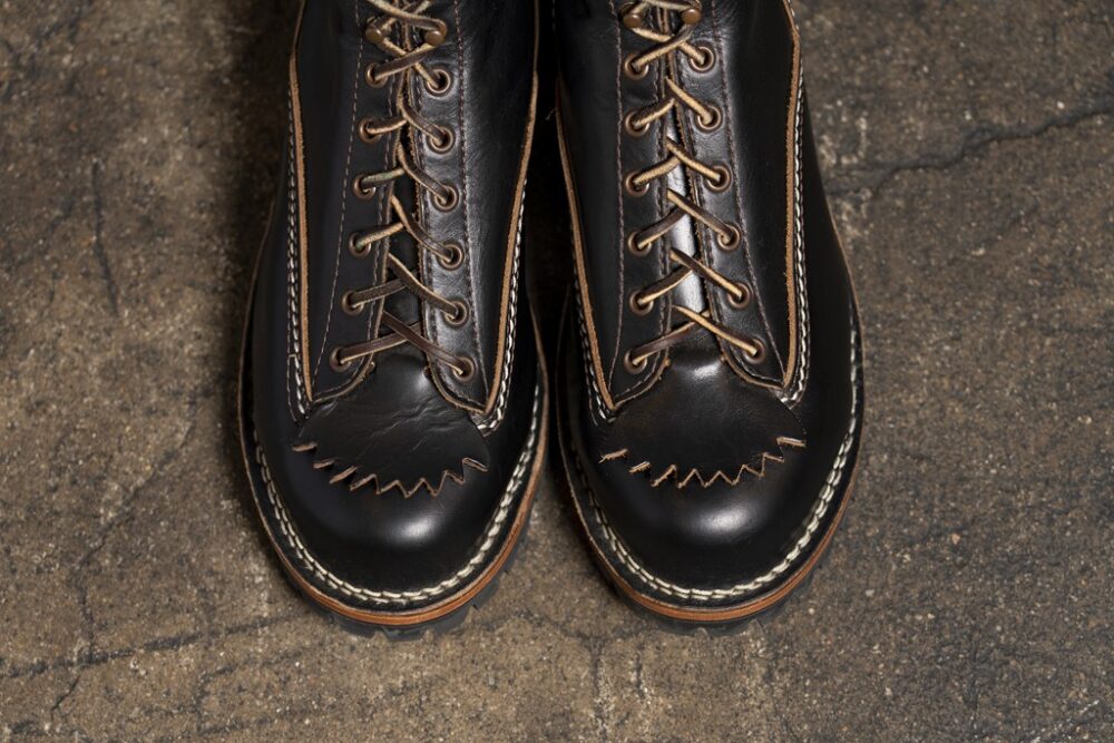 2021年に日本限定レザーとしてカスタムラインナップに加わった「ダブルショットレザー」を用いたジョブマスターとボス。牛革を使用するが革全体を染めるのではなく革表面のみを染色しているため、履き込むことで茶芯が現れるなど独特の経年変化が楽しめる。