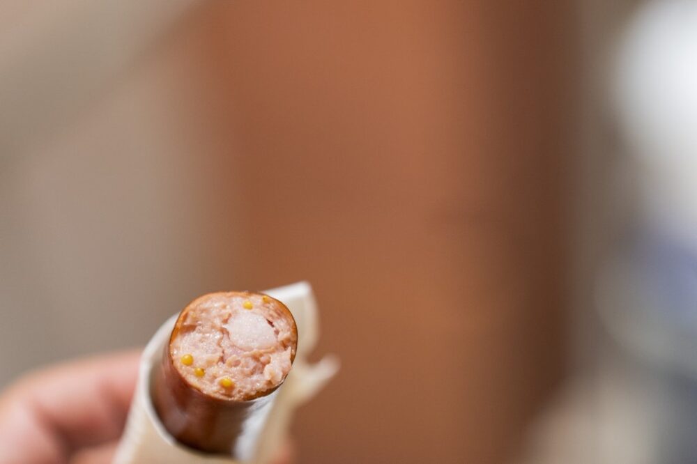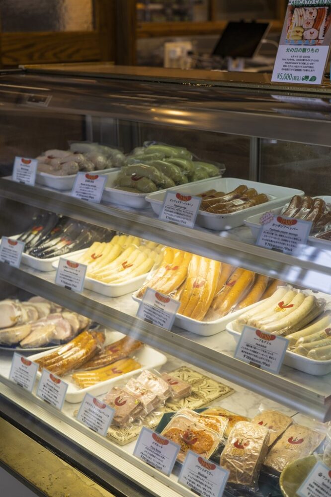 使っている肉は50年前から変わらない昔ながらの仕事にこだわる近隣の精肉店から仕入れている。それをナイフで筋や膜などを丁寧に取り除き、工房内にあるチョッパーで挽肉したものがソーセージになるのだ。面白いのはソーセージによって異なる素材。ものよってはサキイカを使ったり、ピスタチオを使ったり……。ソーセージってそんなに自由な食材だったの? と衝撃を受ける。しかし、それらを入れればいいというわけではない。それぞれの素材のバランスが絶妙なのだ。口の中での食感、素材の風味、そして噛めば噛むほどあふれ出す肉の旨み。一度食べたら忘れられないほどのインパクトがある。