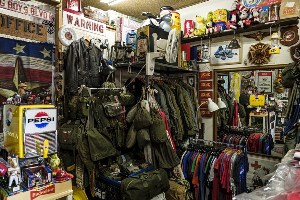ミリタリージャケットから雑貨まで幅広いラインナップのセカンドライフ。ミリタリーコレクターも掘り出し物を探しに訪れるのだとか。