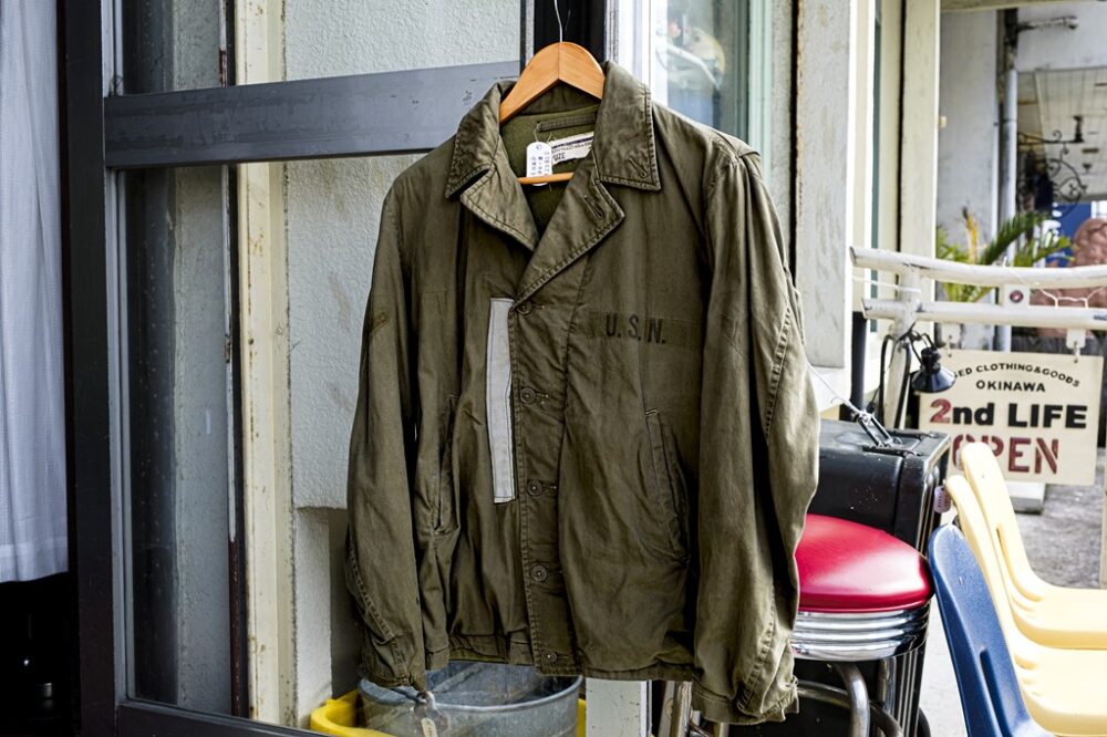 沖縄県宜野湾市にあるセカンドライフは2010年に創業。お店ではヴィンテージ古着と雑貨を中心に扱う。中でも店内の一角にあるユーズドミリタリーコーナー。年代を問わずヴィンテージのミリタリーウエアが掘り出せる、宝探し的な買い方ができる。どれも一点モノなので早いもの勝ちだ!